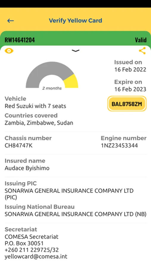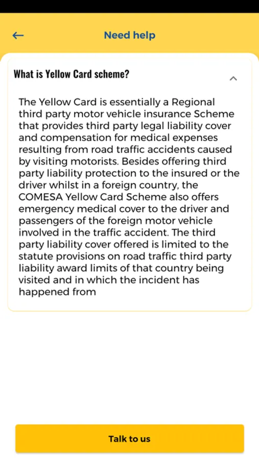 The app enables users to verify COMESA Yellow card, report accidents, get information on Yellow card purchase and to get help from COMESA Yellow card secretariat.