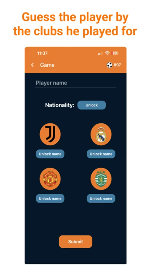 Step up your football knowledge with Player Predictor - the ultimate challenge for fans of the beautiful game! In this exciting app, you'll be tasked with naming the player based on the clubs he has played for. With a huge database of players from top leagues around the world, you'll be able to test your memory and improve your knowledge of the sport. The colorful, user-friendly interface makes it easy to play on-the-go. you'll always have new players and clubs to guess. Whether you're a seasoned fan or just looking for a fun way to pass the time, Guess the Player is the perfect app for you. Download now and see how many players you can guess!