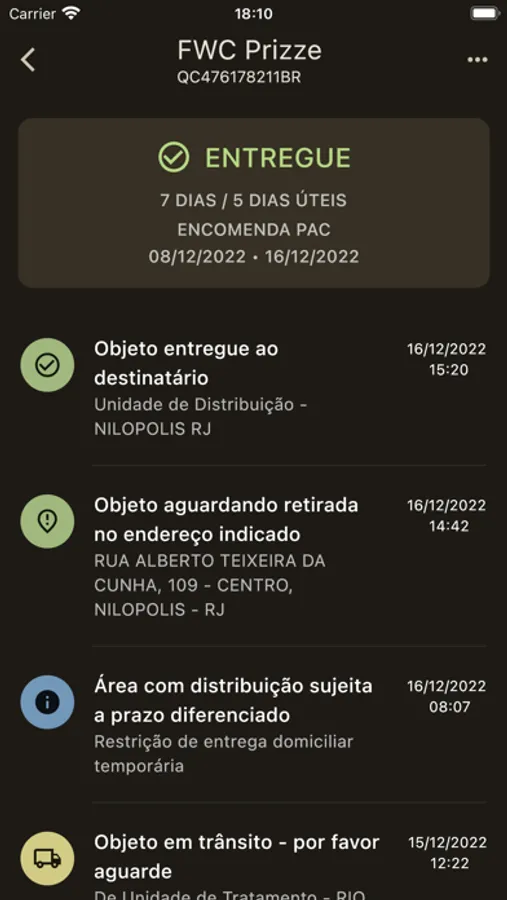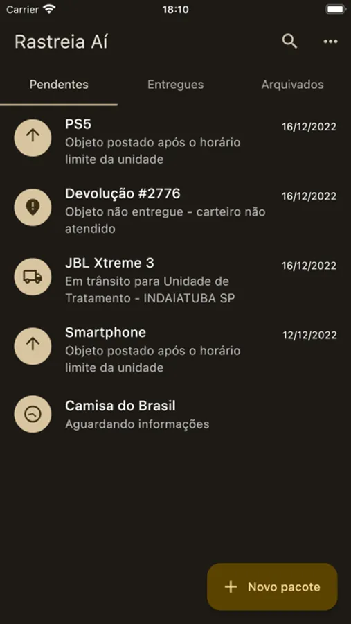 Com notificações de push você ficará informado sobre qualquer evento que venha a acontecer com a sua encomenda.