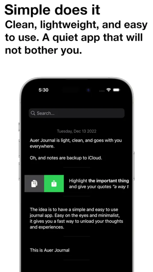 Auer Journal provides a simple way to writing your thoughts and experiences in a digital diary and journal. With a clean and minimal interface, the entries are grouped nicely by date and backed up to iCloud, so you can share them across your devices.