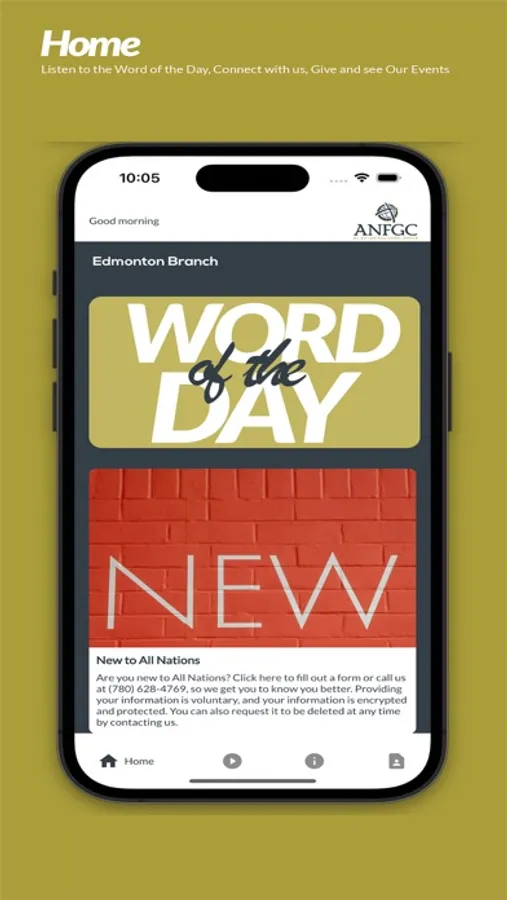 All Nations Full Gospel Church mobile app for the Edmonton branch.