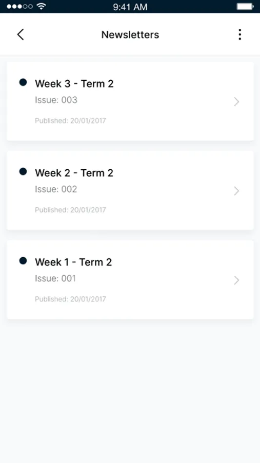 Newsletter: the Newsletter module allows St Mary's College to share electronic newsletters, directly to the app