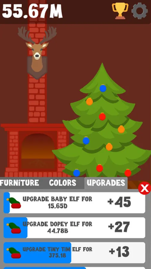 Ever dreamed of clicking a Christmas tree over and over and over again? Ever dreamed of being able to decorate for Christmas on your phone? This holiday special of a game, includes every feature you would ever want in a clicker. You can click. You can buy elves to click for you. You can buy a fireplace. You can buy ornaments for your tree. You can buy a star also for your tree. You can buy a table. You can buy cookies and milk for your table. You can do about everything in this amazing game.