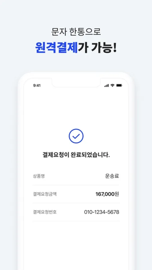 - 대면결제가 어려운 고객에게 결제 SMS문자만 발송하면 원격결제가 가능!
