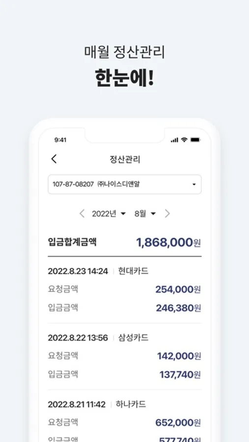 - 이번달 카드결제내역 요청과 완료건이 한눈에!