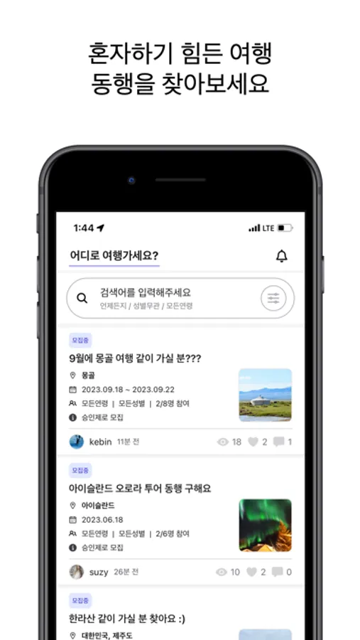 - 혼자하기 힘든 여행, “같이해요”를 통해 새로운 친구를 만나보세요.