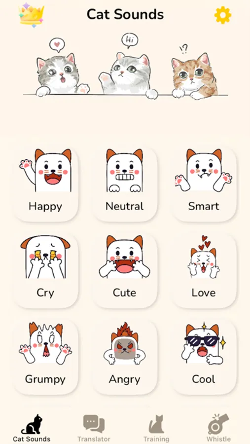 - 20+ Different Cat Meow Sounds - play the meow sounds and observe your pet's reaction.