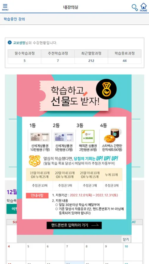 Live-M러닝 앱 제공 카테고리