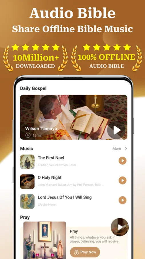 To explore over 10,000 different sessions on pensive prayer, Catholic Holy Bible readings, Holy music, and more.
