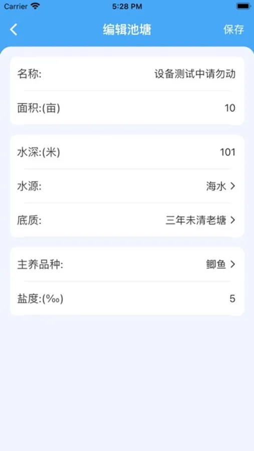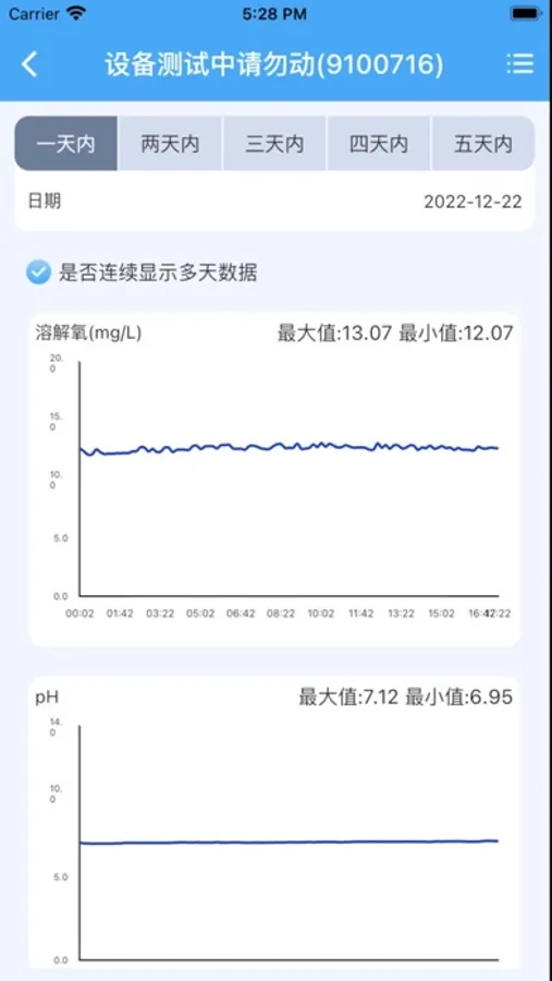 5.水质告警设置界面可以设置水质数据上下限, 帮助用户及时检测水质范围,能更好的起到预警作用;