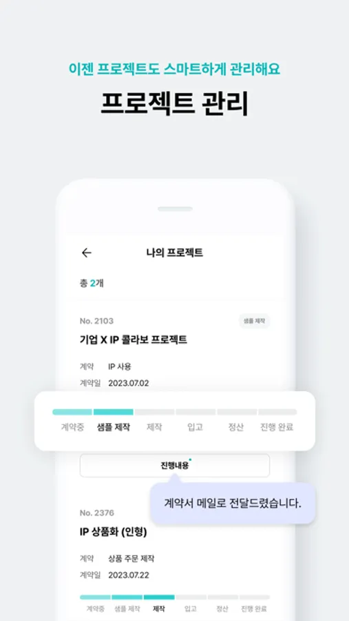 수많은 프로젝트를 앱에서 간편하게 진행상황을 확인하고 알림을 받아보세요.