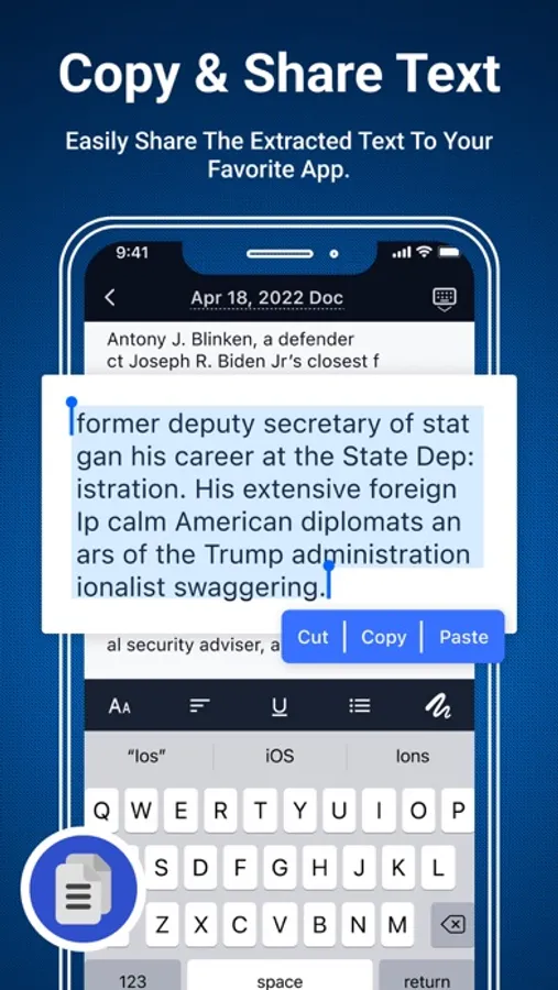The optical character recognition (OCR) feature of this scanner app enables you to recognize text in images or PDFs. You can extract the text for later searching, editing, saving or sharing.