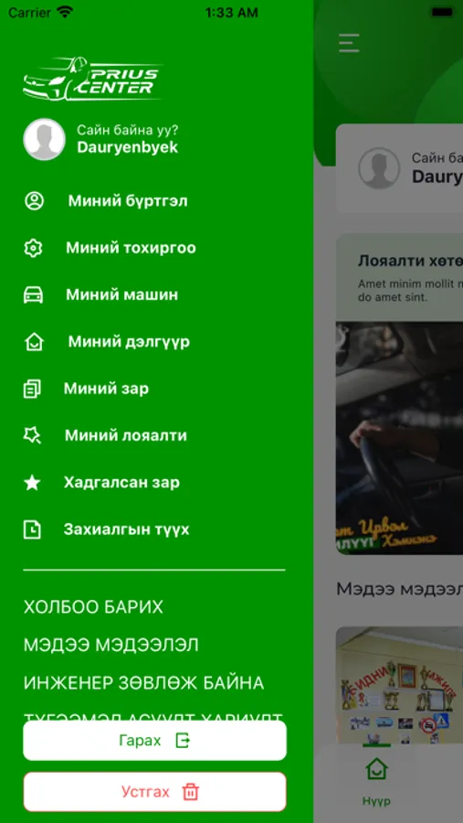 -Өөрийн автомашиндаа авсан үйлчилгээний мэдээлэл
