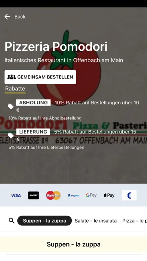 Mit der Pizzeria Pomodori Mobile App können leckeres Gericht bequem von zu Hause aus genießen. Stöbern Sie in unserer Speisekarte, wählen Sie die Gerichte aus, die Ihnen schmecken, und geben Sie Ihre Bestellung in Sekundenschnelle auf.