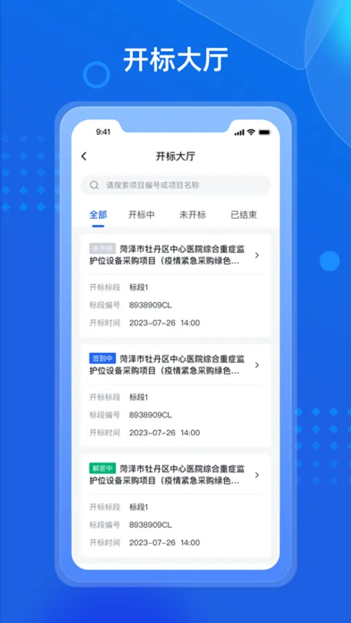 【开标大厅】开标全流程实时动态,从签到到结束,让招标采购更便捷。