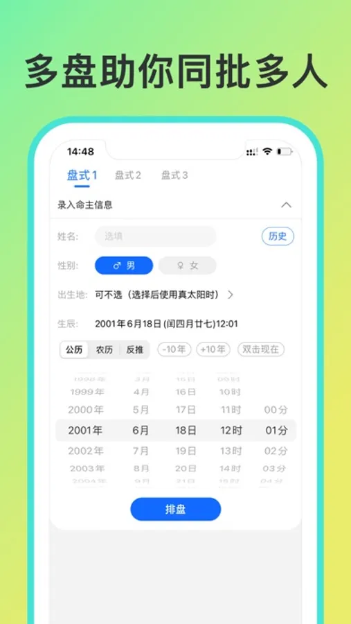 4、特别研发支持同时起多个盘的八字排盘工具。