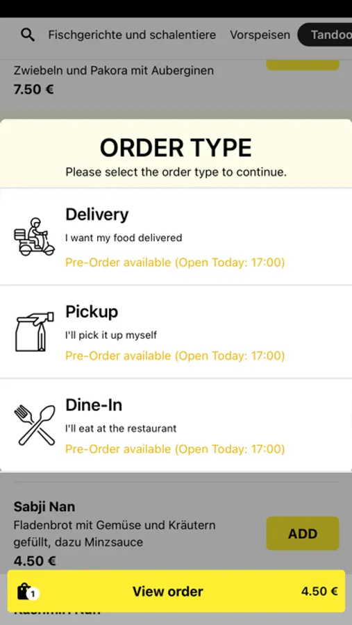 - Durchsuchen Sie die Speisekarte des Restaurants und sehen Sie sich alle anpassbaren Optionen im Voraus an