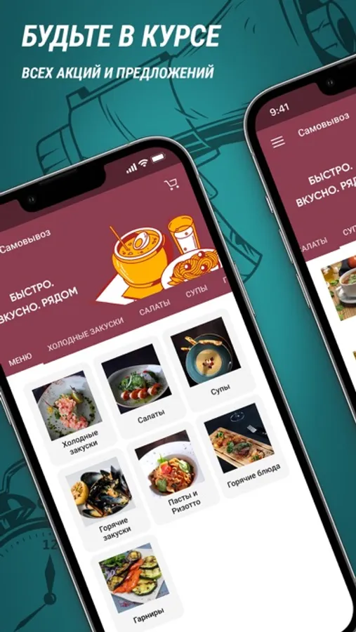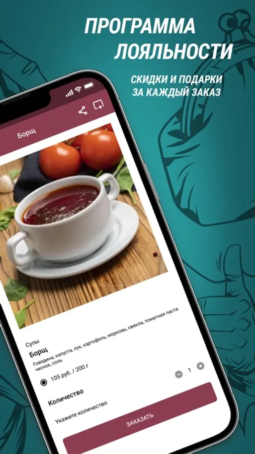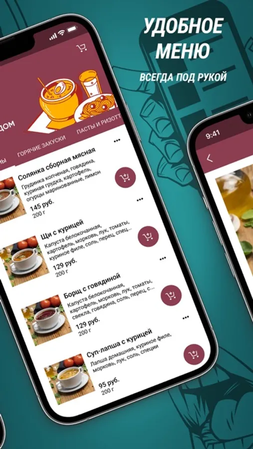 Заказать готовые блюда вы можете через мобильное приложение. Достаточно выбрать способ получения заказа, добавить понравившееся блюда в корзину и указать контакты.