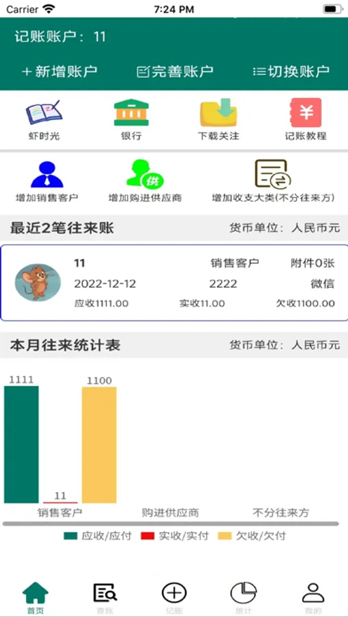 籽虾记账是一款专门为小生意打造的,用于记生意往来账、日常开支账的软件,操作简单让老板自己都会记账,云端保存让原始单据永不丢失,记往来账让生意往来清清楚楚,记开支账让日常开支明明白白,查询方便让用户灵活查询所找内容,统计强大让用户便捷统计所需数据,为天下小生意人保驾护航!籽虾记账独特设计,让非专业人士记账变得非常简单!