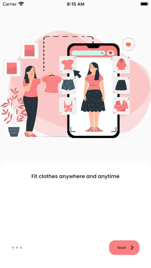 - Try on virtually in the fitting room with your device's camera by uploading the images of clothes you want to try. You can use your smartphone's front or rear camera and adjust the clothing's position.