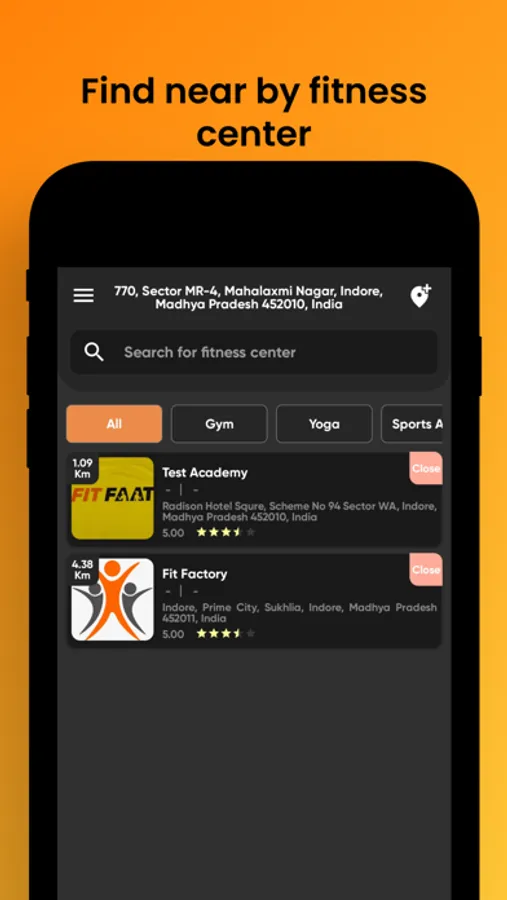 Fit Faat App will help you to find out near by Gym, fitness center, Pilates, Yoga Center, Dance Academy, Karate and martial arts, Boxing Classes, Swimming Classes, Sports Academy. Get to know which Arena event is happening near your city, state or country. Enroll in the arena event by filling arena form and win awards.