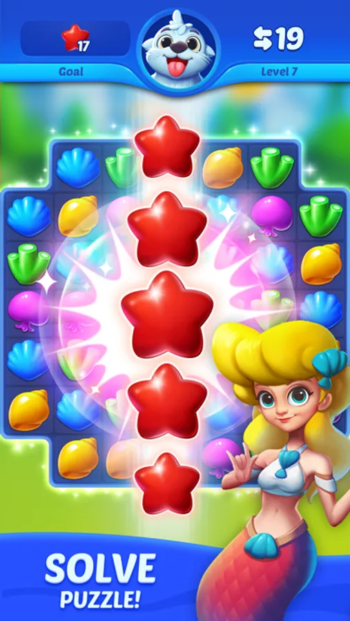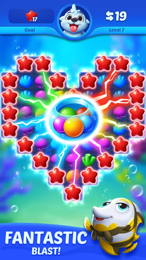 Match 3 or more colorful pieces in order to clear the game board and solve exciting puzzles, receive free coins for unlocking new fish and decorations, design a cozy home for your lovely fish friends and get powerful boosters to continue your match 3 puzzle saga!