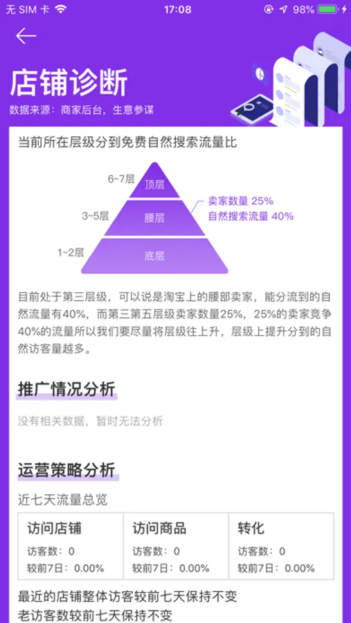 一个专为平台的商家随时进行商品定价对比、店铺诊断和查询销量周报告而开发的便捷工具App。