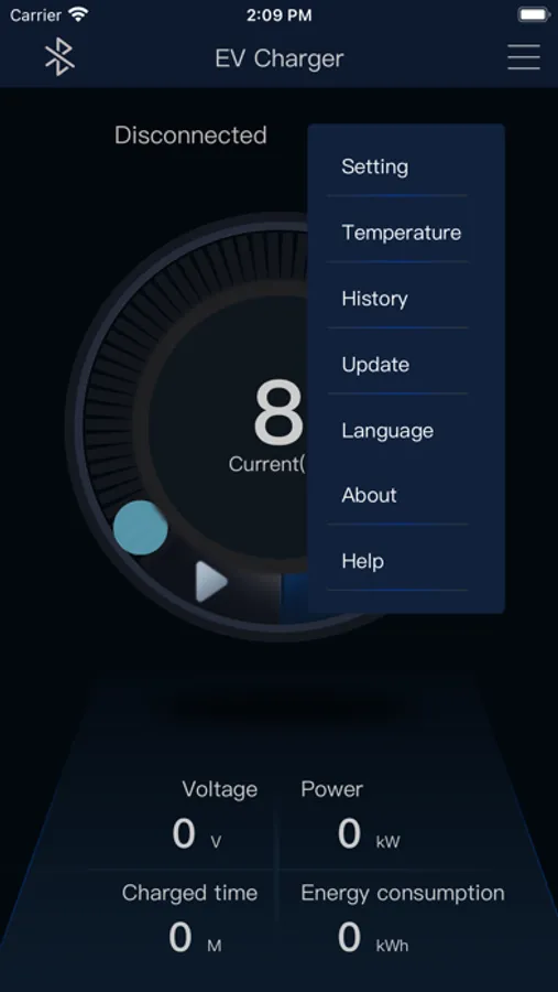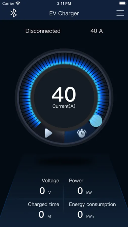App that can control charging devices.The control device charges the vehicle by connecting the hot spot of the charging device. The charging time can be reserved, which is convenient and simple.