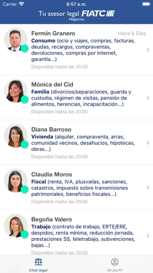 Con Tu asesor legal FIATC Negocios, podrás resolver todas tus consultas legales con abogados/as expertos y de prestigio en distintas materias: consumo, vivienda, mercantil, trabajo, tráfico, fiscal, familia, ayudas y subvenciones.