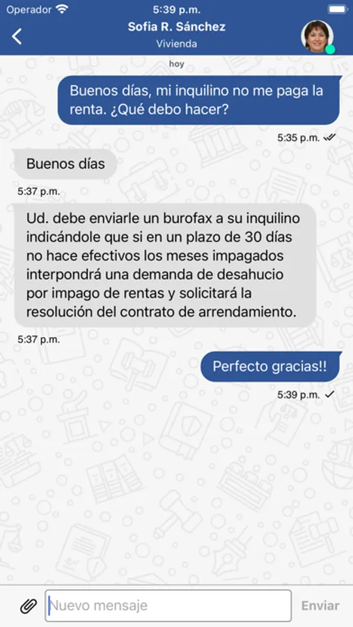 Podrás hablar con ellos/as de forma inmediata e ilimitada por chat y/o por videollamada. Además, también tendrás la posibilidad de compartir cualquier documentación que pueda servir para ofrecerte un mejor asesoramiento.