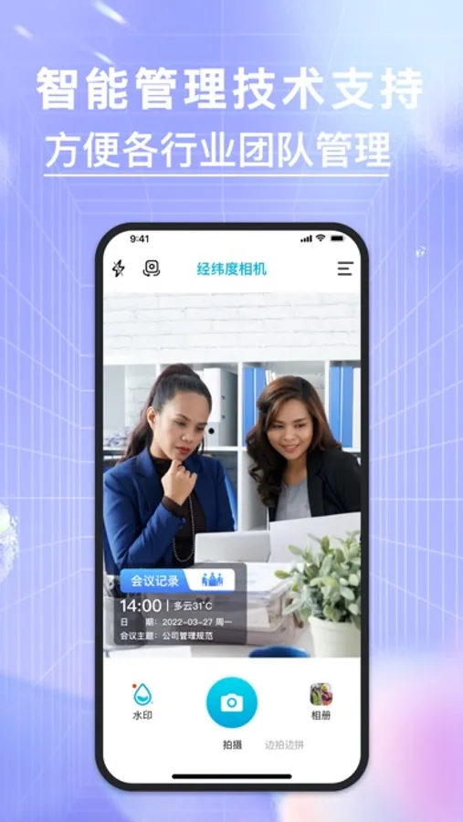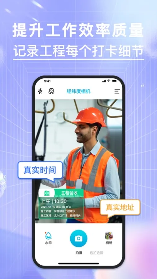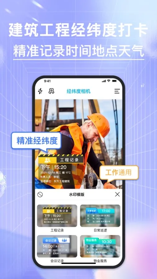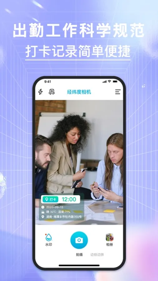 水印相机-记录时间地点天气经纬度是一款通用的水印相机,自动获取当前时间地点和天气,一键拍照即可为当前照片添加水印。