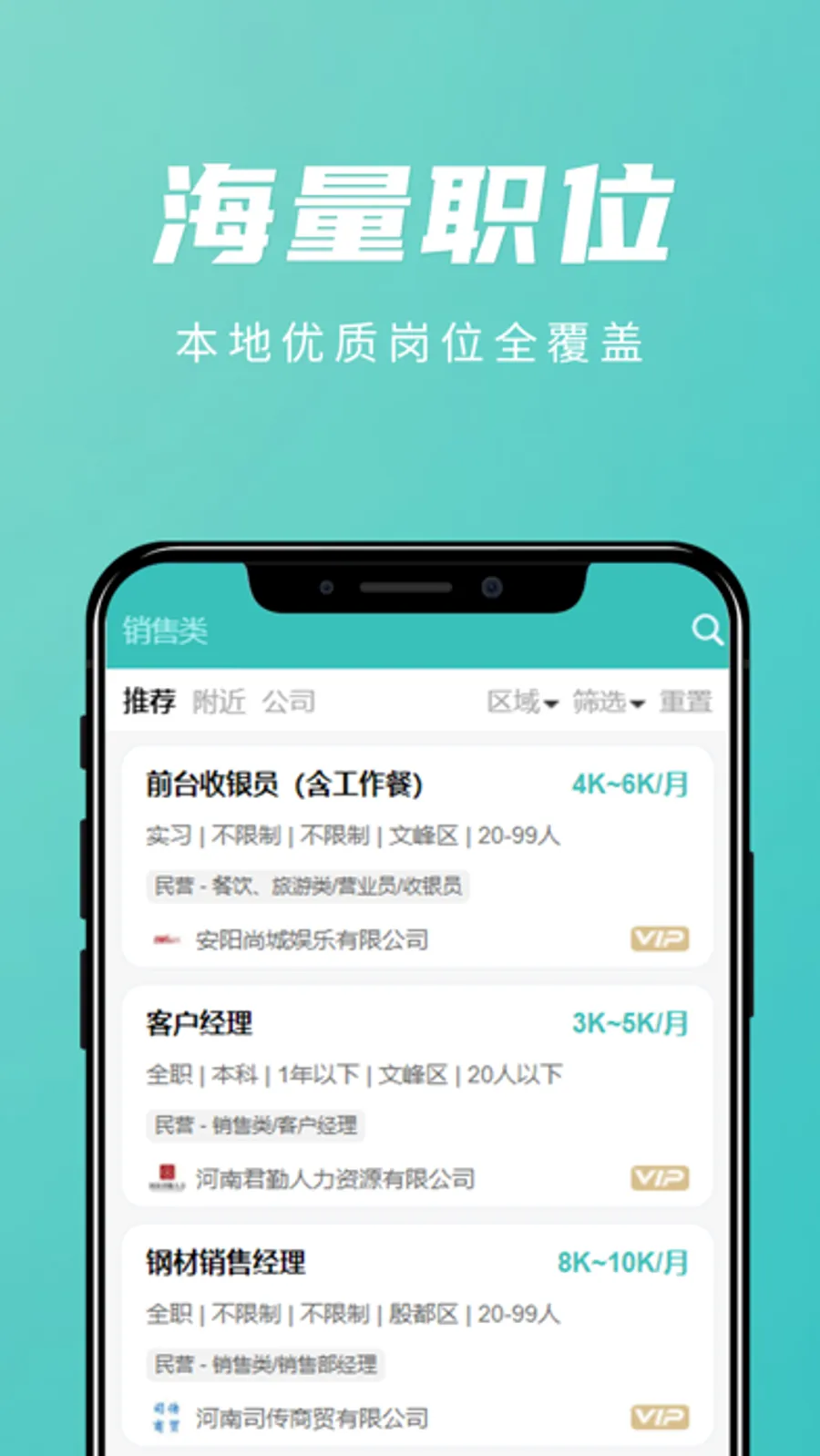 安阳本地智慧化精准就业服务平台,集PC端、APP、小程序、微网站以及全媒体矩阵多元融创发展,深耕十余年,专注为安阳3万余家用人单位和30万高校毕业生及社会求职者提供招聘求职服务。