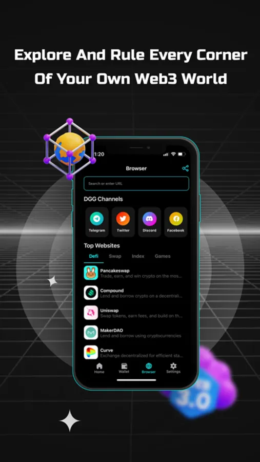 DGG Wallet also enables you the flexibility and security to easily discover the top and favored DApps, DeFi platforms and NFT Games.