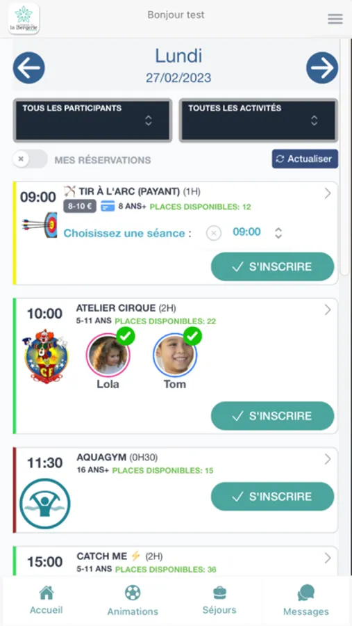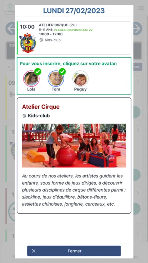 - Register your children in the mini-club (you will be automatically notified as soon as your children arrive or leave the mini-club, and much more...)