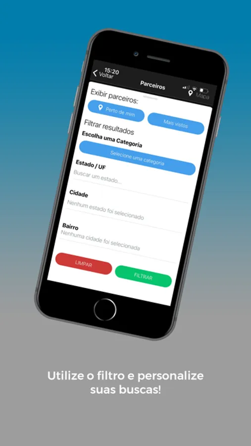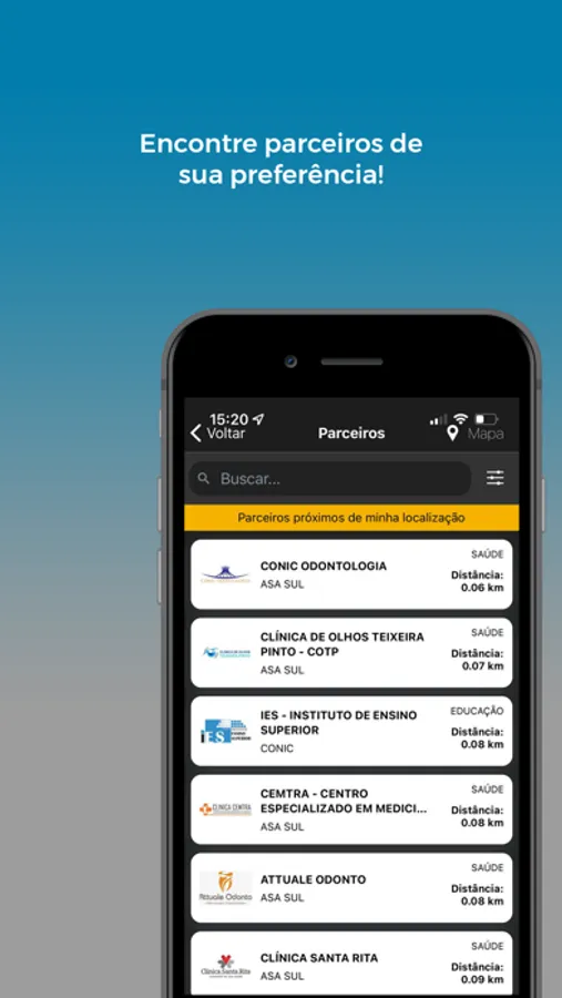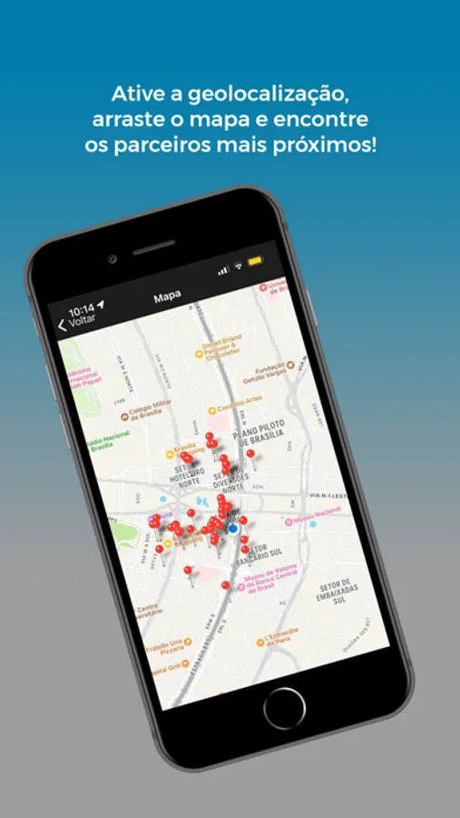 Busca de parceiros através do geolocalizador, filtragem personalizada para as buscas de empresas parceiras, acesso ao cartão virtual para utilizar os descontos, acesso a notícias e além do SAC para atendimento.