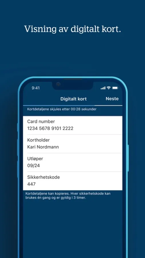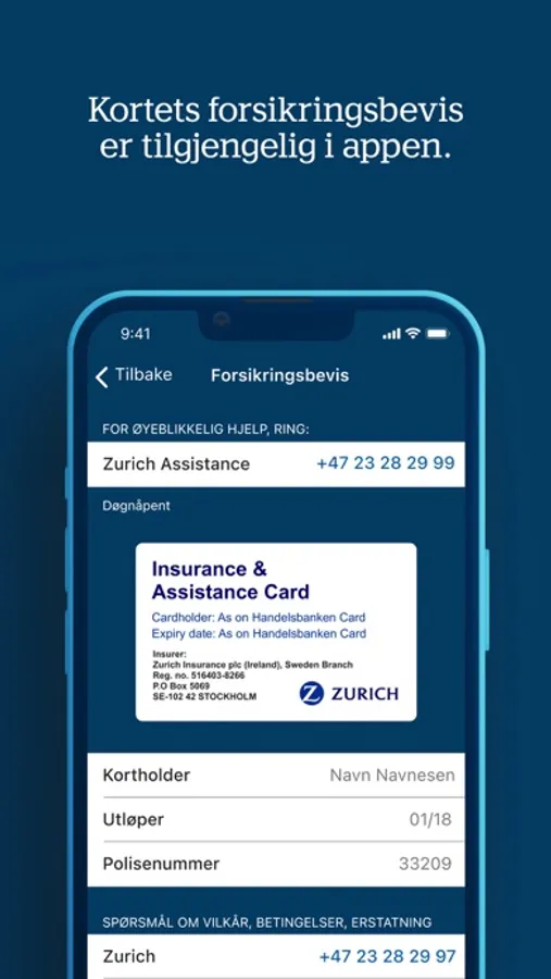 I appen kan man i tillegg aktivere nytt kort, hente PIN-kode, hente kortets forsikringsbevis og se digitalt kort (kortdetaljer).