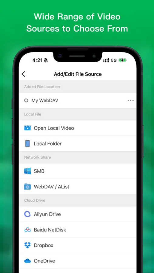 - Network sharing capabilities, with support for SMB/CIFS, WebDav, and other protocols, as well as access to cloud-based video files from Dropbox, Google Drive, OneDrive, and Baidu Netdisk, Aliyun disk, 139 drive, 115 netdisk, enabling easy access to video files on remote servers and cloud storage services.