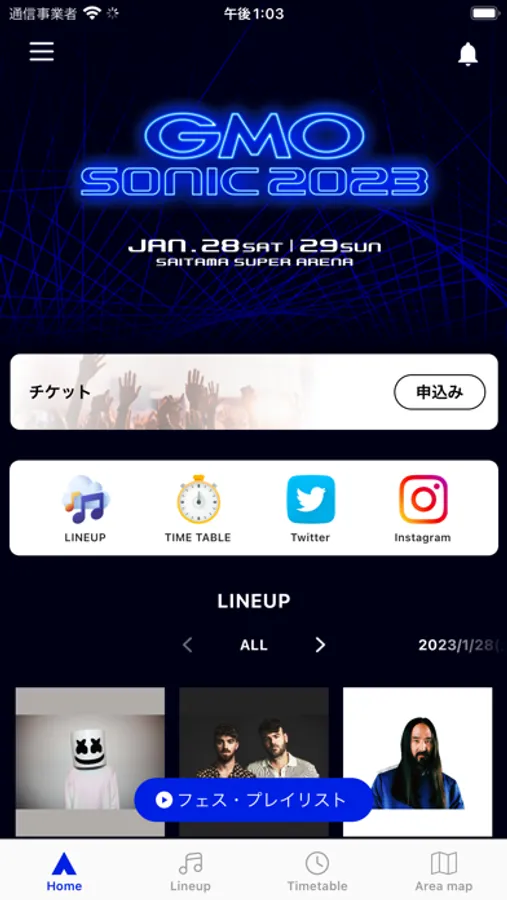 出演アーティストの情報やマイタイムテーブル作成、エリアマップなど当日便利な情報がこのアプリに集約!