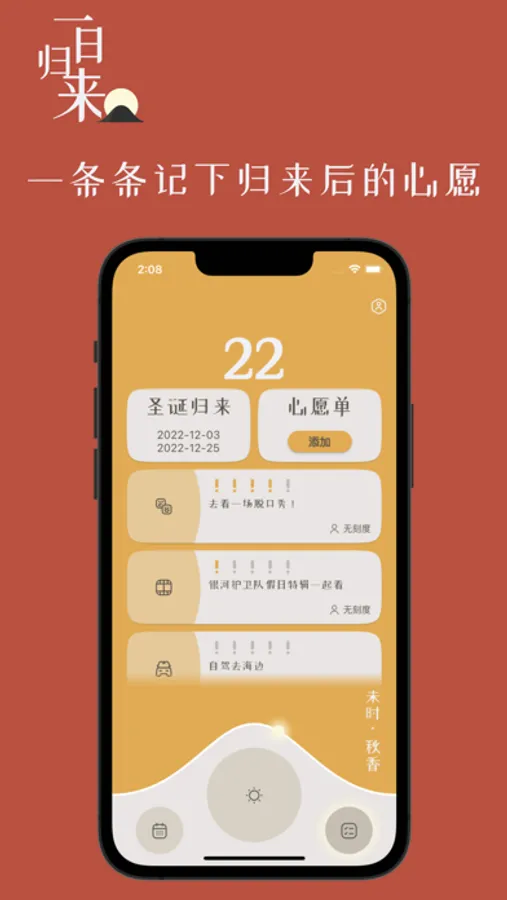 这是一个倒数日小工具,与思念之人共享同一个时空,在漫长的岁月中感受十二时辰的色彩变化,无论多久的等待在这里都将化为一天!