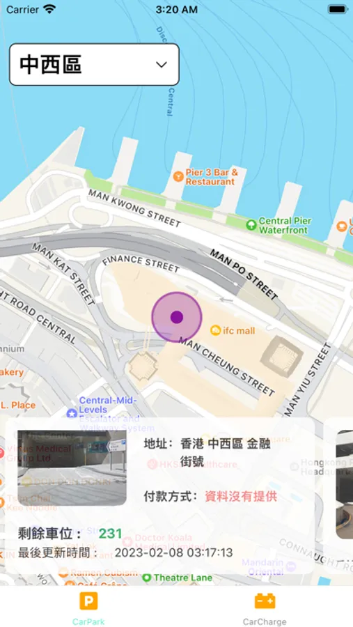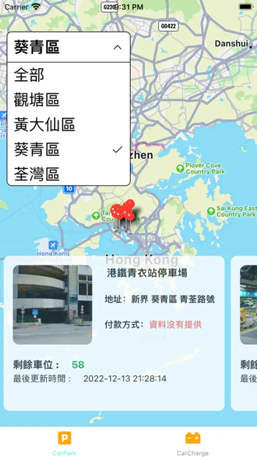 Park and Charge bring your a real-time update of parking slot vacancy , available for Hong Kong 18 districts