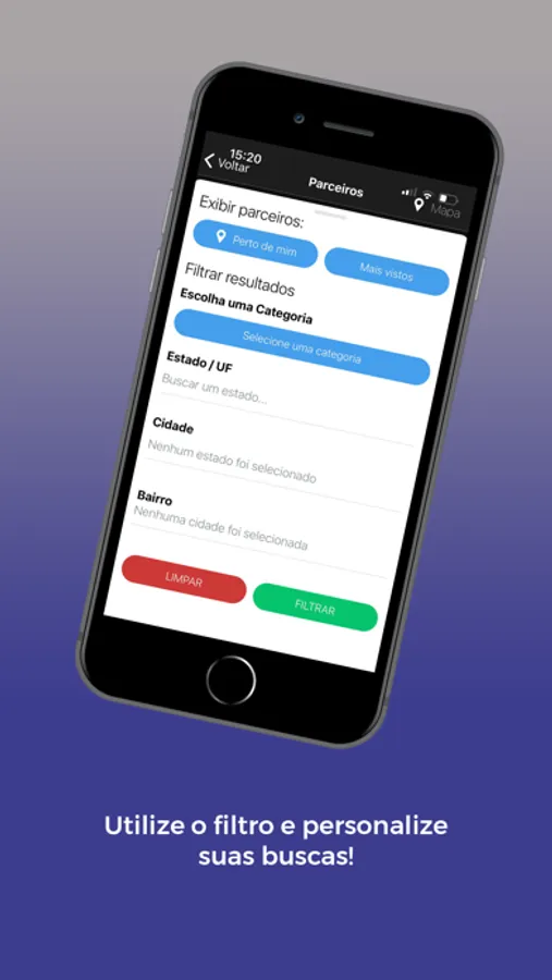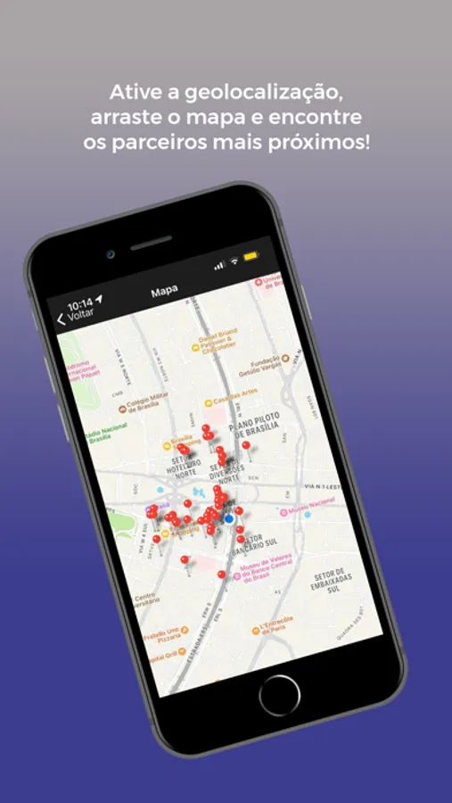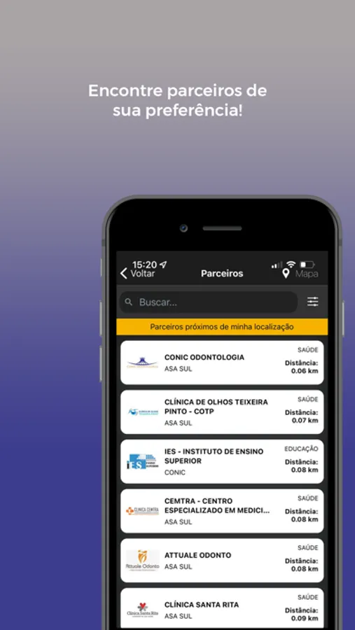 Busca de parceiros através do geolocalizador, filtragem personalizada para as buscas de empresas parceiras, acesso ao cartão virtual para utilizar os descontos, acesso a notícias e além do SAC para atendimento.