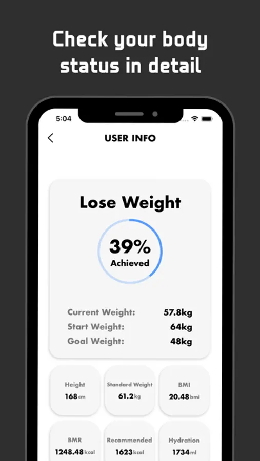 Track your daily weight, body fat percentage, and other important metrics with ease. The app's intuitive design makes it easy for you to see how far you've come and how much farther you have to go to reach your desired body shape.
