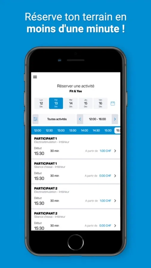 Fini la corvée de réservation ! Avec l'application tu n'as plus qu'à accéder aux créneaux disponibles et à en choisir un. Le club recevra alors automatiquement ta réservation.