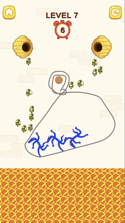Save My Blue Friends Monster is a casual puzzle game. You draw lines with your fingers to create walls that protect the Blue Friends Monster from attacks by bees in the hive. You need to protect the Blue Friends Monster with the painted wall during the attack of the bees, hold on and you will win the game. Use your brain to Save My Blue Friends Monster.