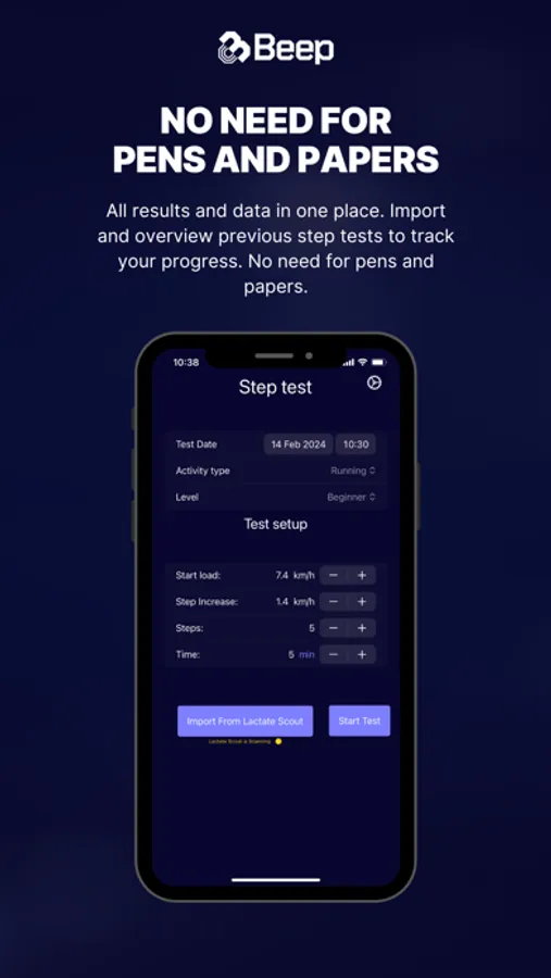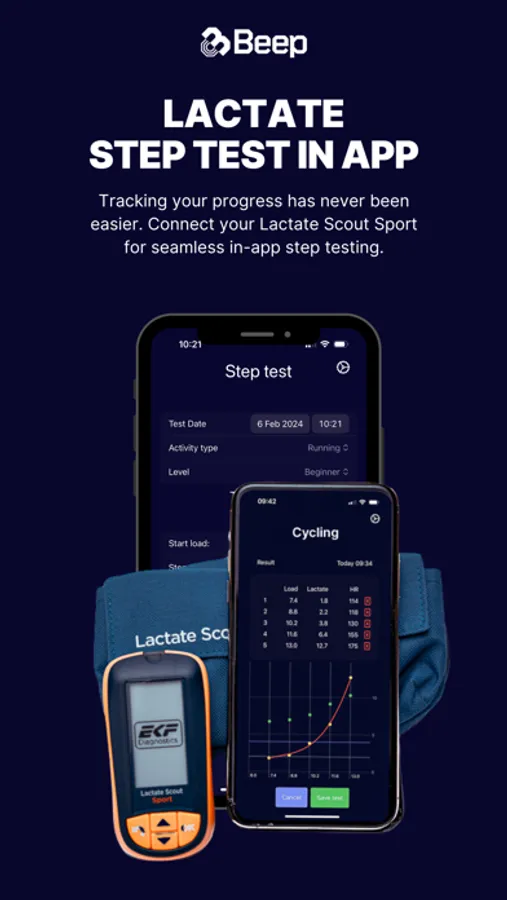 Beep connects with popular sports wearables like Garmin, Oura, and Polar, providing heart rate, sleep data, and HRV insights. Sync with a Lactate Scout Sport device to easily perform lactate step testing within the app, and optimize your workouts according to your individual heart rate zones. Once you've completed a step test, you'll receive detailed reports in PDF format—perfect for printing and sharing. Beep also tracks your training progress over time, showing how much time you've spent in each of your heart rate zones over a 4-week period. This gives you a clear picture of your intensity levels helping you refine your training plan for maximum results.