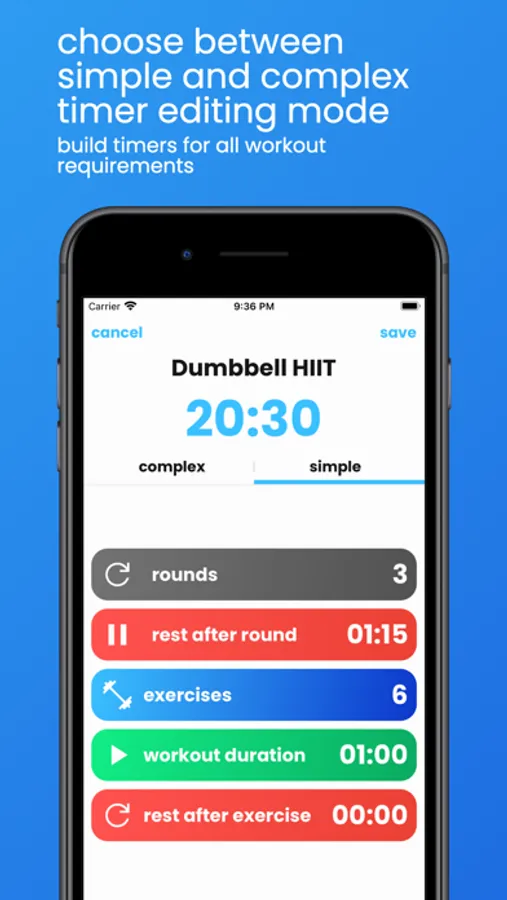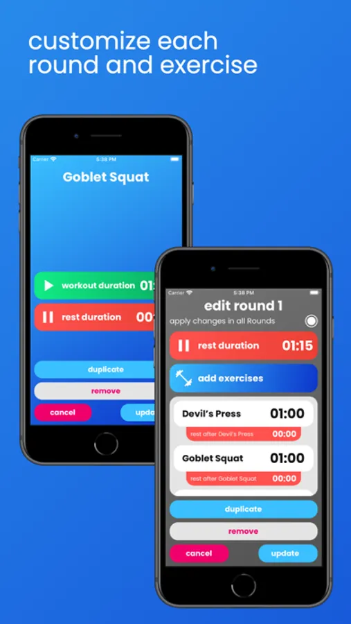 Every round of your workout, as well as every exercise within a round, can be individually customized or simply kept identical to perfectly match your workout preferences.