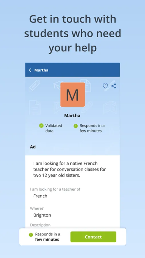 Contact private tutors or students looking for a tutor: use the chat to send them a message and show your interest.