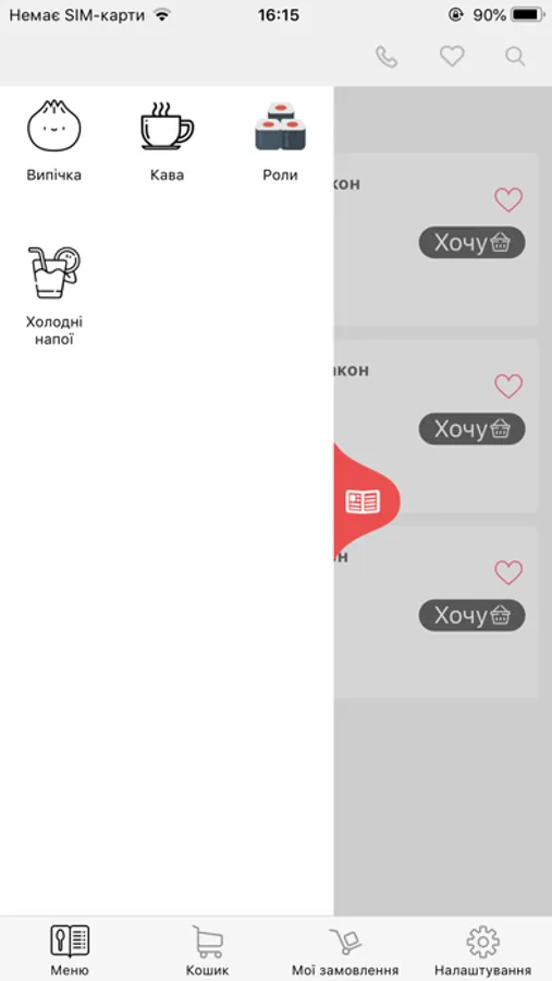 • самостійно замовити страви з меню: