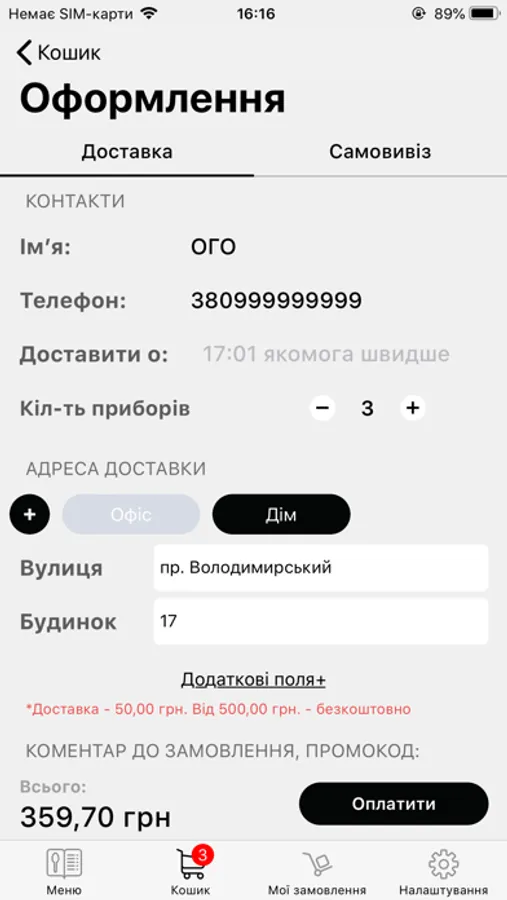 • встановити бажаний час доставки замовлення за вказаною адресою;