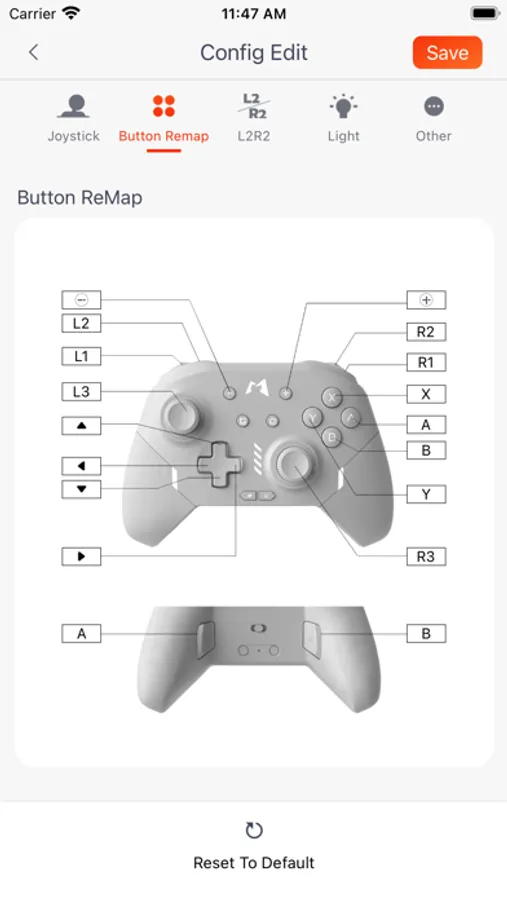 MOBAPAD is used to cooperate with the Mopai handle. It can be set to modify the handle button mapping, light intensity/color, vibration, joystick curve, trigger, and six-axis adjustment. And many other functions, users can modify the handle parameters according to their own habits.